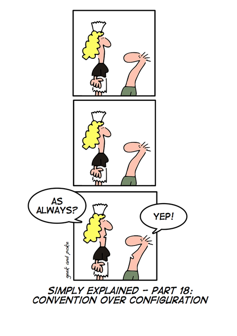 Many recent software development frameworks use the term “Convention over Configuration”. The main idea behind this, is to remove the need for a programmer to explain every detail of an application and instead only specify what the unconventional aspects will be. This should in theory, remove coding unnecessary aspects of the application that otherwise should be taken for granted. This results in faster development, simplified code and ease of management. Anything that doesn’t fit the ‘convention’ needs to be ‘configured’.